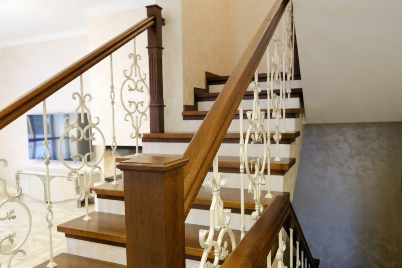 Этот проект — яркий пример того, как классический монументальный дизайн может быть легким и изящным. Мы создали статусную трехмаршевую лестницу, где благородство темного дуба эффектно подчеркнуто светлыми подступенками и белыми коваными балясинами. Это решение позволило гармонично интегрировать лестницу в интерьер, сделав ее центральным произведением искусства.