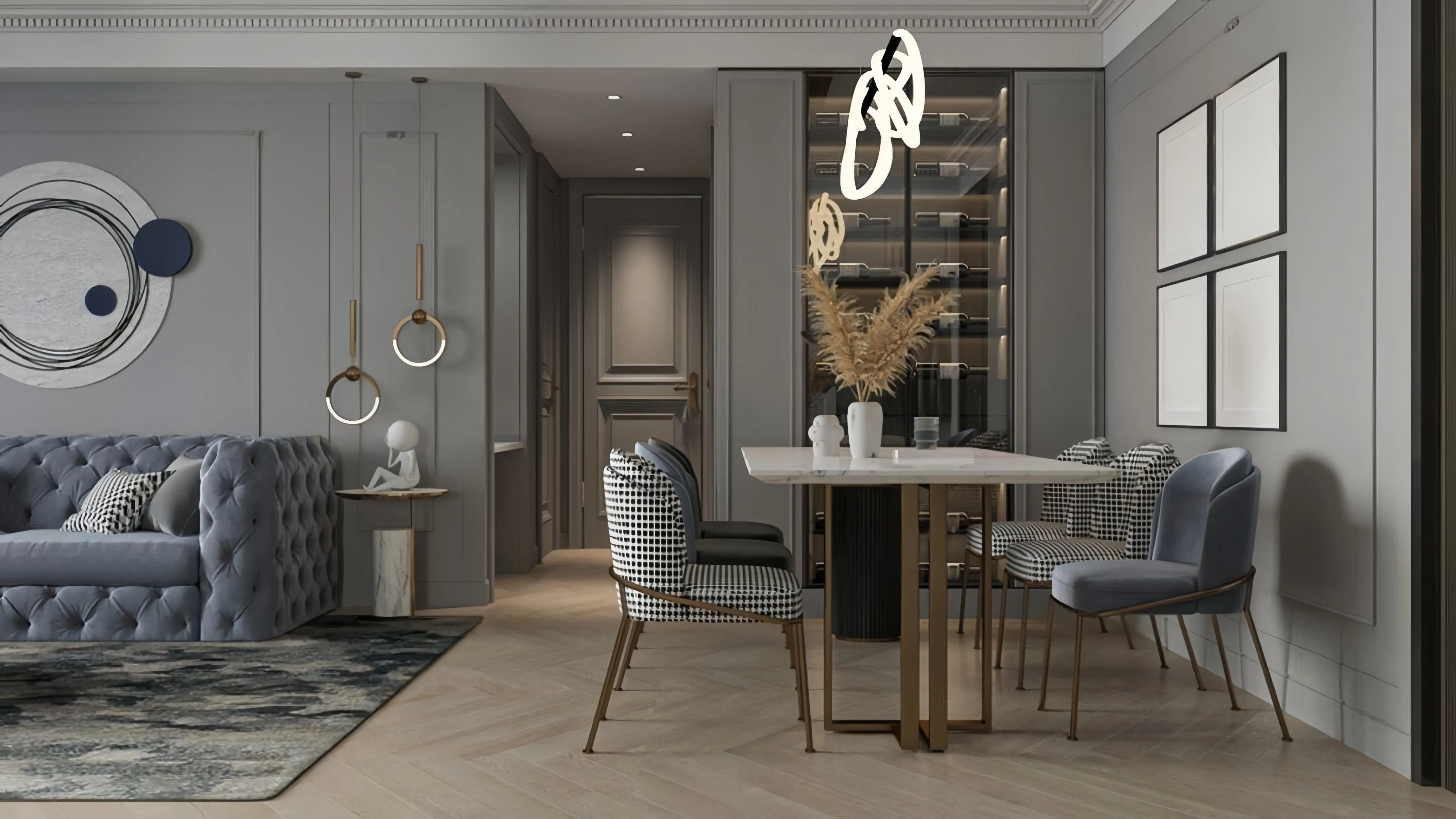 Чистовая отделка: Самый творческий и ответственный этап воплощения дизайна. Производим укладку премиальных напольных покрытий, покраску стен или поклейку обоев, монтаж декоративной лепнины, установку дверей, сантехники и осветительных приборов.